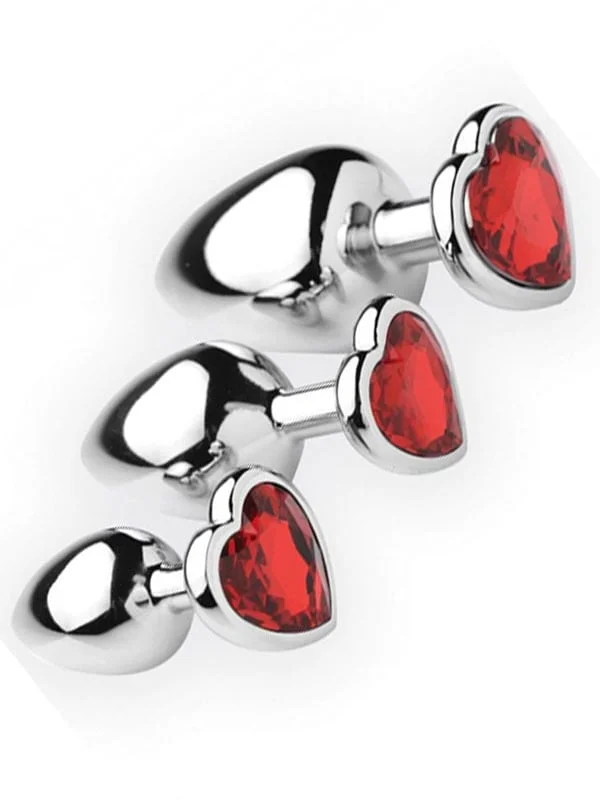 NOXXX Kalp Mücevherli Çelik Anal Plug 3’lü Set