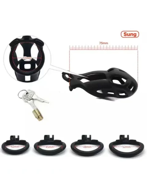 Diğer penis kilitleri ile karşılaştırıldığında, Sung Cobra 2.0 birçok avantaj sunar ve ayrıca itaatkâr erkeğin mastürbasyon yapma olasılığını tamamen önler. Tabii ki, kilit takılıyken cinsel ilişki veya aldatma da imkansızdır! Sung Cobra 2.0, hafif olmasını sağlayan yüksek performanslı bir plastikten yapılmıştır.